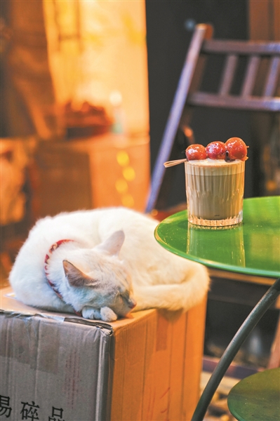 我有猫,你要喝咖啡吗? Follow Coffee的老板金金,与其说自己选的店址,还不如说被这条路给选中的。 当时她“身在曹营心在汉”地在一家连锁咖啡店打工,住在西湖大道的另一侧。来来回回走过好几次这条路,月黑风高,遇到过几次与之玩耍的流浪猫,在某个去银行存钱的晚上,她决定:就是这里了。 在Follow Coffee入驻之前,这个店址的“前任”店铺是一家叫catcatcat的甜品店,颇有名气。珠玉在前,开了3年多的Follow竟然做得更加有声有色——连店里的三只猫都红到各有“唯饭”!在我叫错了猫咪的名字之后,一位老客看不下去,幽幽地纠正我:“这只猫是Jerry,不叫Lucky!”