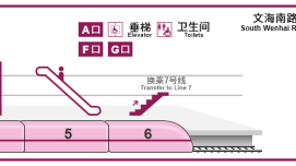 还是以8号线青六中路站为例。根据地图信息,想要快速换乘7号线的乘客,可直接在6车厢旁的换乘通道进入7号线站台,无需乘坐电扶梯前往站厅再进行换乘。其余车厢的乘客可在下车前,通过自身所在车厢位置,判断下车后换乘方向,换乘一步到位。