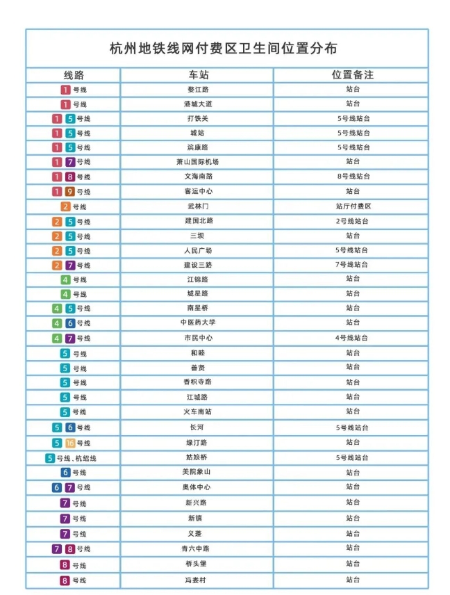 杭州地铁在部分车站试点推出了避免上述尴尬的神器——“卫生间便民卡”。 什么是“卫生间便民卡”? 卫生间便民卡作为已购票进站乘客出站如厕的凭证,实行“一人一卡”制。 什么情况下可以领取?在哪领取? 如果乘客刚刷卡进站,发现该车站付费区未设置卫生间,便可至客服中心领取卫生间便民卡。 如何使用“卫生间便民卡”? 凭此卡可从客服中心边门出站,再次凭此卡从边门进站乘车,不用重新购买车票进出站。 哪些线路设置有“卫生间便民卡”? 目前,杭州地铁于余杭高铁、钱江路等2、4、9号线部分车站试点推广“卫生间便民卡”。 “卫生间便民卡”有时间限制吗? 卫生间便民卡有效期30分钟哦! “卫生间便民卡”有哪些注意事项? 该卡不得借用或通过其他途径违规使用,一经发现,将遵照杭州地铁无票乘车等相关票务政策进行收费。 暂未设置该卡的车站怎么办? 线网部分车站在站台设置了卫生间,解决了乘客乘车时想上厕所的难题。 杭州地铁线网站台卫生间分布图,建议收藏——