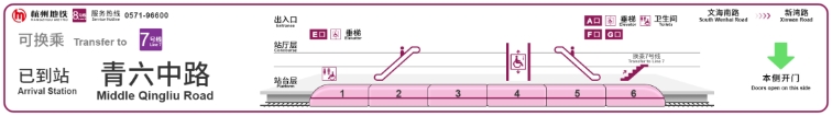同时,上方还显示了杭州地铁客服热线,行车过程中遇到任何问题的乘客可随时致电反映。 设施设备信息 第二部分为站点信息。这部分集成体现了站点所有电扶梯、垂梯、卫生间等设施设备信息,以便乘客迅速判断自己需要前往的方向。
