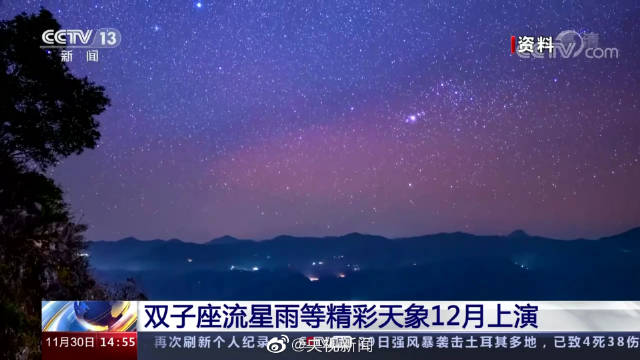 双子座流星雨是北半球三大流星雨之一,天文预报显示,今年的双子座流星雨将于今天15时左右迎来极大,极大时ZHR(在理想观测条件下,辐射点位于头顶正上方时,每小时能看到的流星数量)为150。今夜月落之后,双子座流星雨的辐射点也会升得比较高,适宜观赏。 据中国天气网气象分析师王伟跃介绍,今天夜间,包括京津冀、长三角、珠三角等地在内的我国中东部不少地方晴朗少云,适宜观赏流星雨;河南、山西、陕西、青海等地部分地区以多云天气为主,看流星更需好运加持;而新疆北部、四川盆地等部分地区云量较多或者有雨雪天气打扰,星踪难觅。 需要注意的是,新疆大部、西北地区西部、青藏高原西部以及东北地区大部、内蒙古中东部等地最低气温将低于零下10℃,华北大部、西北地区中东部、川西高原等地最低气温也会在冰点以下,大家外出赏星请注意做好防寒措施。 双子座流星雨肉眼即可欣赏 月落前或有意外收获 双子座流星雨流星体速度较慢、亮流星多,时常还有火流星出现。大家只需要仰望星空,就可用肉眼欣赏流星划过夜空的美景,也适合天文摄影爱好者进行拍摄。 为了体验最佳观赏效果,有条件的朋友可以去光污染较少的郊区,选择视野开阔的地带进行观赏。此外,虽然月落之后才是观赏流星雨的好时机,但月落之前也能看到一些相对更亮的流星。因此,在月落前,朝远离月亮的方向看去,可能有意外收获。本年度星空压轴大赏登场,一起来一睹为快吧! |