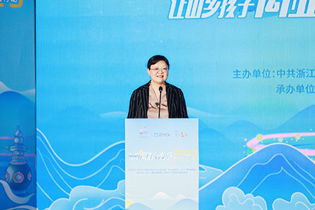 中共浙江省委宣传部副部长、省文明办主任俞慧敏致辞 省委宣传部副部长、省文明办主任俞慧敏向长期以来一直关心支持我省未成年人思想道德建设工作的各界人士表示了感谢,并表示支教队是宣传队,也是播种机,要让亚运的种子不仅在孩子们心间扎根,更要在山乡传播,让孩子们共享杭州亚运的美好。 作为人类灵魂的工程师,这些支教老师将走进山区26县的春泥计划实践点、乡村少年宫和新时代文明实践站,和当地文明办携手,为山乡的孩子们传播亚运知识和精神,让浙江六地优质的教育资源与山乡共享,让孩子们共享亚运盛事,过一个“亚运味儿”的暑假。 杭州市天长小学楼朝辉校长作为支教代表发言,他说通过这次支教,希望为孩子的发展提供各种可能,让每个孩子能憧憬并践行自己的梦想。同时,也期待这次亚运之旅,能为美好的教育交流提供更广阔的时空,为人类命运共同体的建设作出杭州贡献!