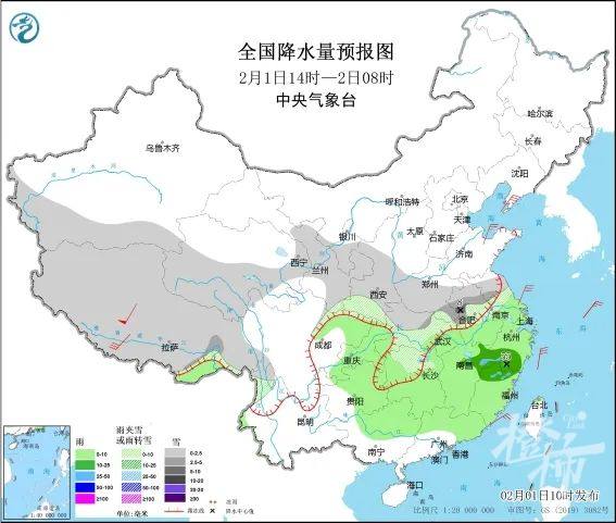 全国天气:2月1日至2月5日,中东部地区有大范围雨雪冰冻天气过程;西北地区东部、华北、东北、黄淮北部等地有降雪,黄淮中南部、江汉、江淮西部和北部、湖南西北部、贵州中北部、重庆北部和东部等地有雨转雨夹雪或雪,上述大部地区有中到大雪,部分地区有暴雪,局地大暴雪或特大暴雪;长江中下游及以南大部地区有中到大雨,部分地区有暴雨。2月1日至4日,河南南部、湖北、安徽北部、江苏北部、山东南部、湖南西北部、贵州东部、重庆东部等地部分地区有冻雨。