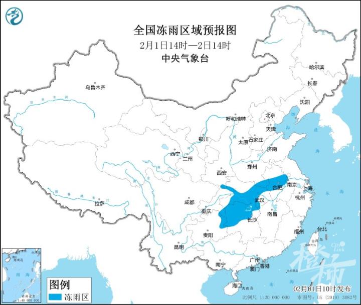 中央气象台今天发布了冰冻橙色预警:预计,2月1日至4日,河南南部、湖北、安徽中北部、江苏北部、湖南中北部、贵州东部、重庆东南部等地部分地区有持续性冻雨。其中,2月1日14时至2日14时,河南南部、安徽中北部、湖北西南部和中东部、湖南中北部、贵州东北部、重庆东南部等地的部分地区累计冻雨量可达3~8mm,局地10mm以上。
