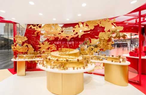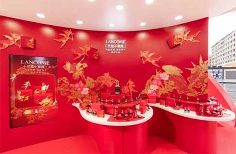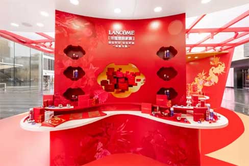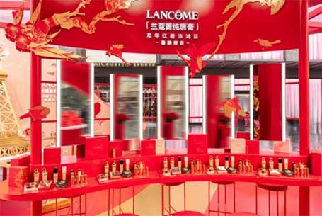 兰蔻锦绣花龙新春游园会打造护肤、彩妆、香氛全品展示及试用区,每个区域以作品「锦绣花龙」中西祥瑞为命名,寓意美运与祝福。