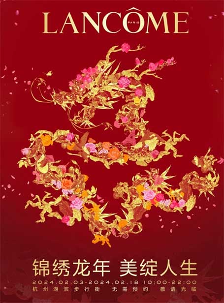 即日起至2月18日,兰蔻锦绣花龙新春游园会亮相杭州湖滨步行街,邀你前来共贺新春,美运开年。