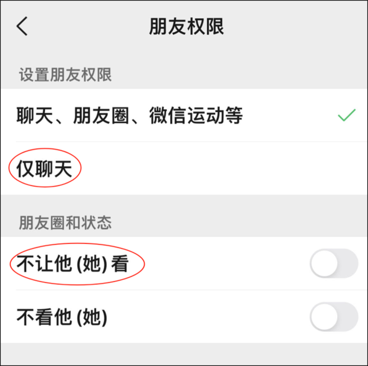 1、朋友权限中的“仅聊天”