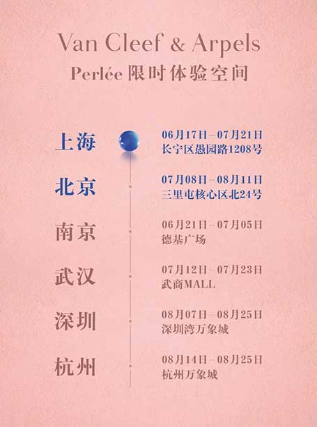 梵克雅宝Perlée限时体验空间已于上海、南京焕然启程,并将相继于北京、武汉、深圳、杭州欣然呈现。