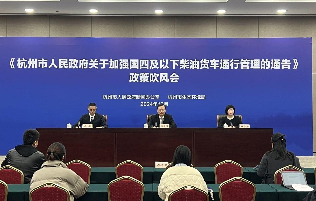 今天,杭州市人民政府新闻办公室和杭州市生态环境局召开新闻发布会,介绍关于加强国四及以下柴油货车通行管理的相关内容。