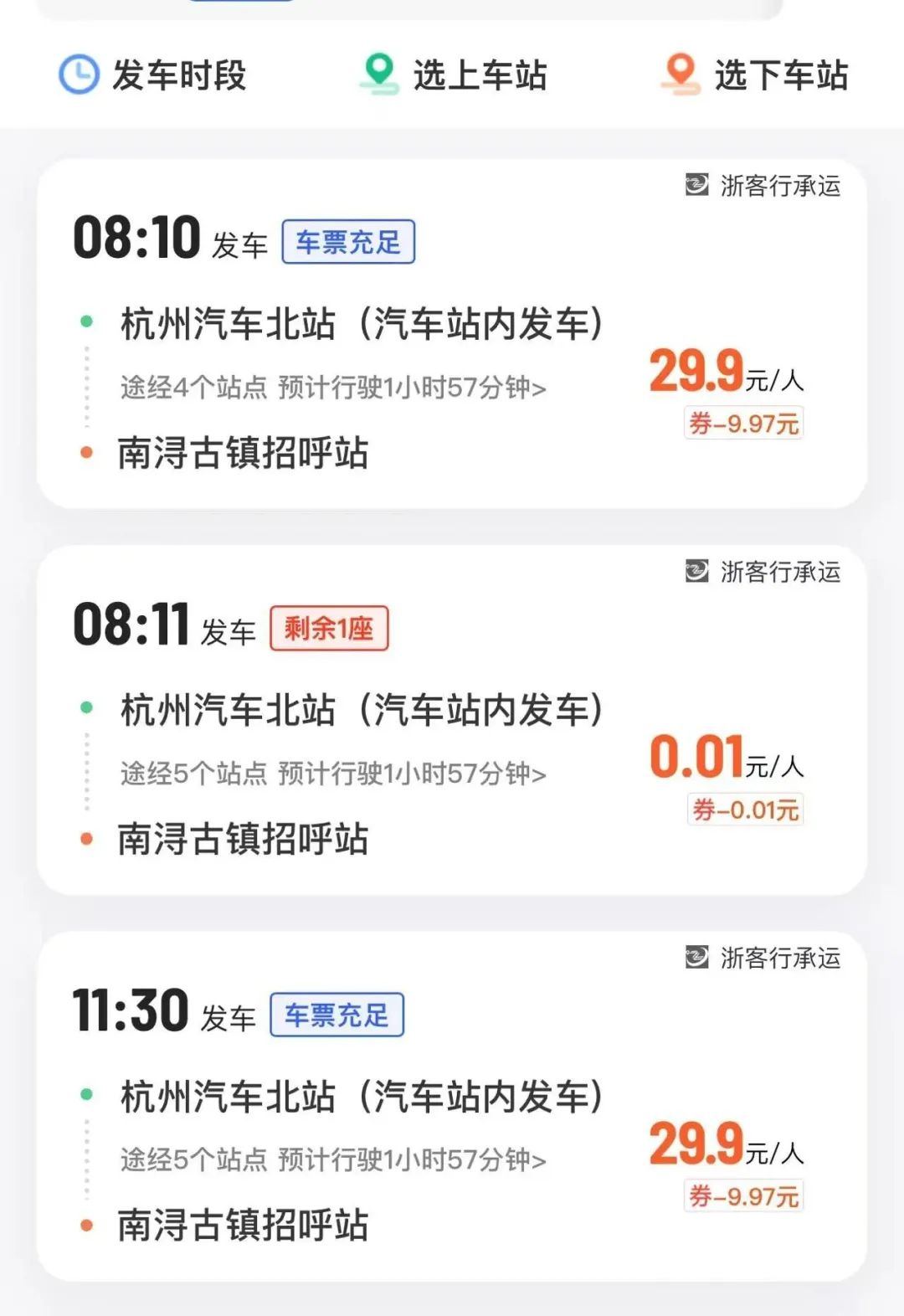 你没听错,真的只要0.01元,就能从杭州到南浔!