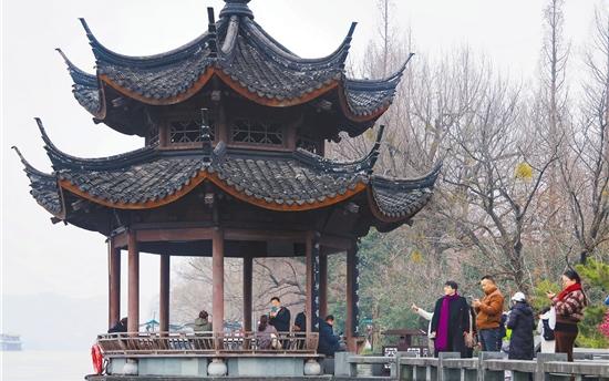 长期受湖水扰动影响 西湖边的夕影亭“歪”了?