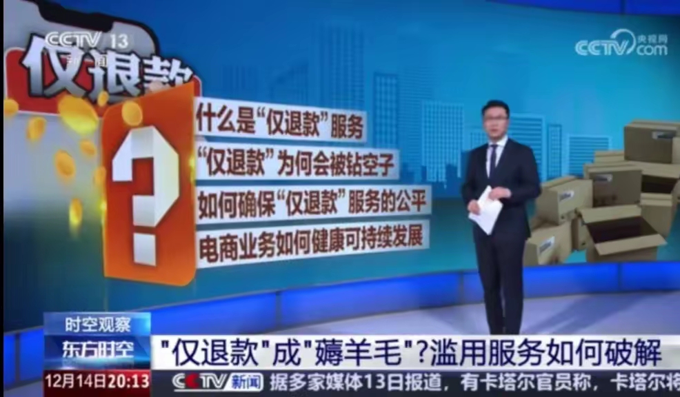 据介绍,去年,针对社会集中反映的“仅退款”问题,国家市场监管总局约谈主要电商平台,就平台利用“仅退款”规则挤压商家生存空间、助长低质低价竞争风气等问题,提出具体整改要求,落实平台企业主体责任。约谈以后,主要电商平台对“仅退款”规则进行优化,为平台内商家提供了更大自主权。