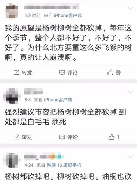 杨树、柳树是北方常见的树种,栽植历史悠久。而飞絮则来自它们的雌株,是树种传播和繁育后代的一种生理现象,也是植物自然生长过程中产生的必然结果。