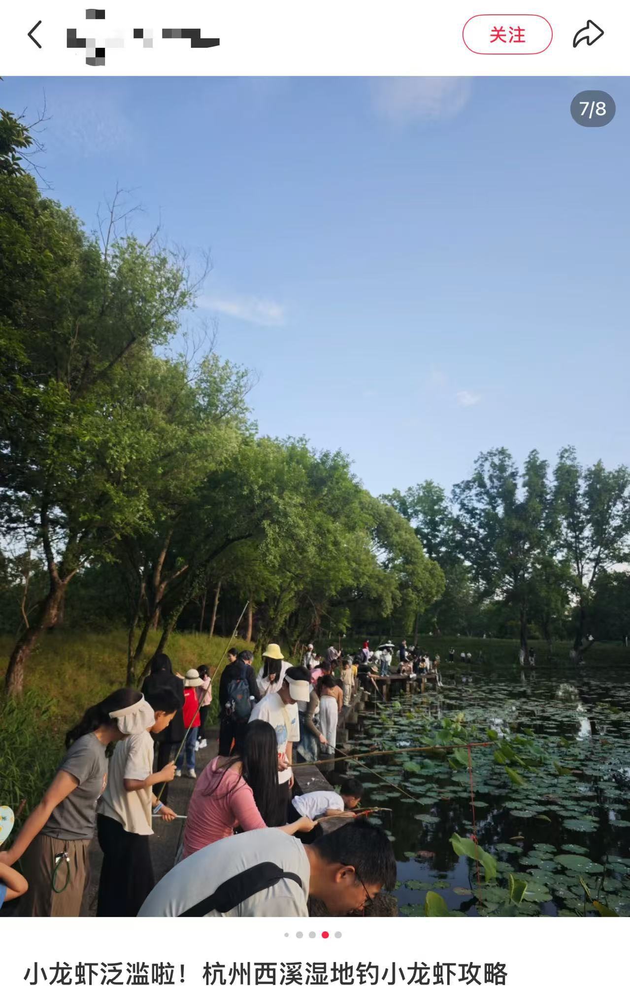 5月,正是品尝夜宵“顶流”小龙虾的最佳时期。在社交平台上,有网友称,“杭州西溪湿地可以免费钓小龙虾”,吸引不少人前去体验。