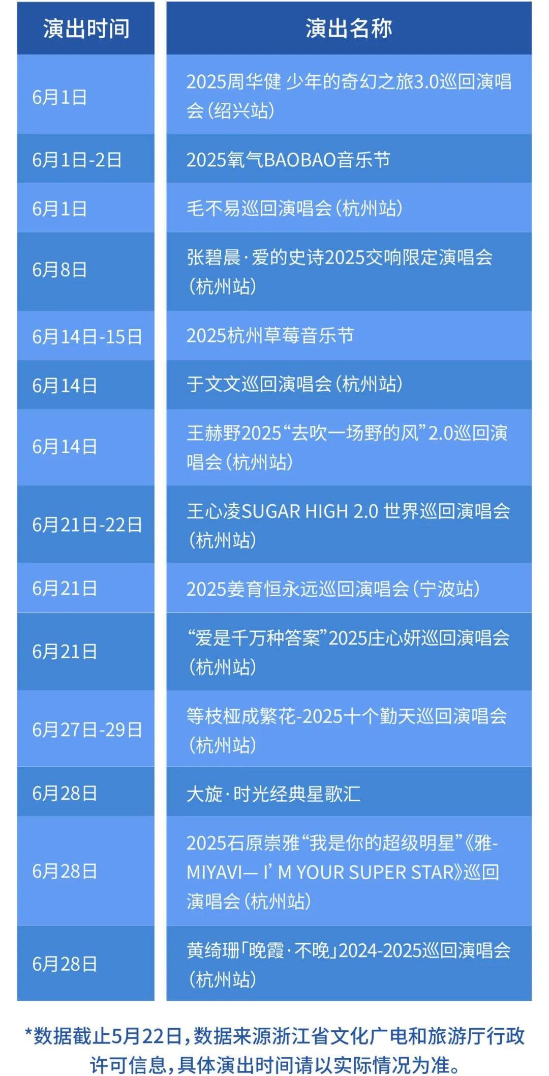 潮新闻记者整理了6月浙江即将召开的演唱会/音乐节信息。有需要的读者,赶紧收藏吧: