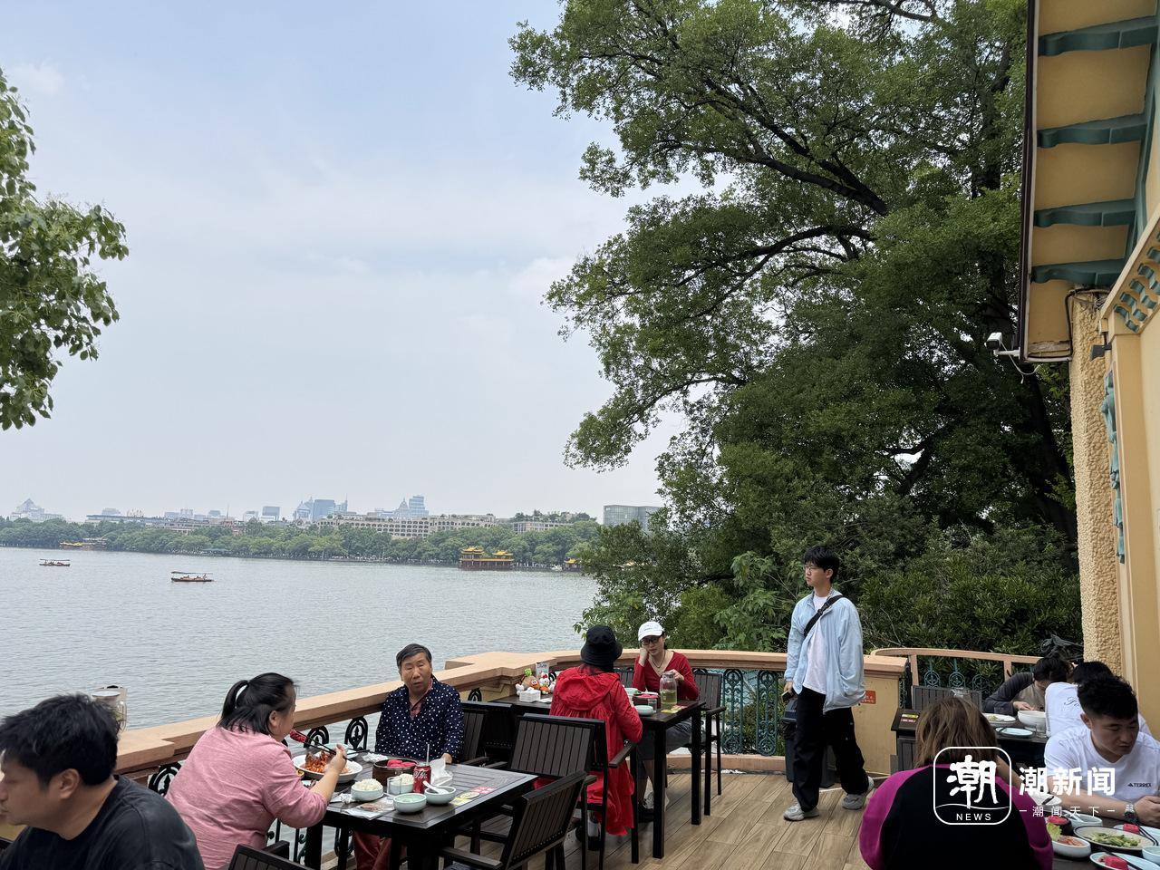 5月25日中午,餐厅二楼露台临湖的位置已经全部坐满。记者 金檬 摄