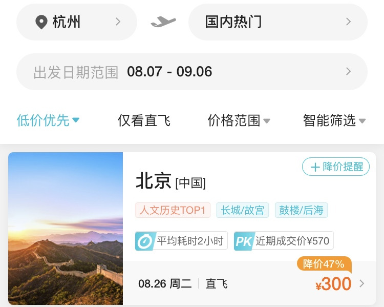 “感觉今年暑假的机票比往年便宜,今年临近出发日期,反而比我提前订的往返机票便宜了300多元。”进入8月,不少小伙伴发现,最近浙江多地出发的国内机票出现好价,部分热门目的地300元起就可飞。