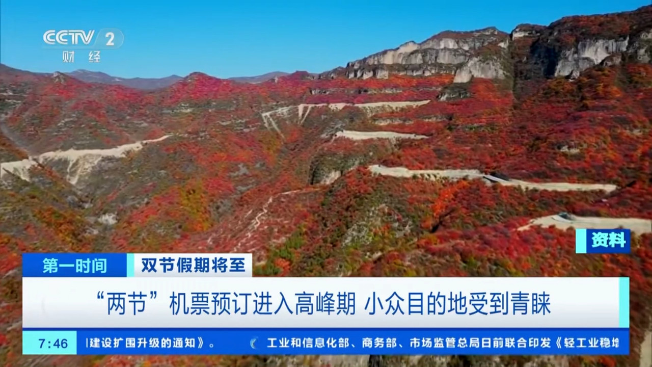 记者发现,假期期间众多游客热衷前往以秋色闻名的目的地,“赏秋”“红叶”“海边”“草原”“晒秋”等关键词的搜索量环比8月上涨两倍。像陕西榆林凭借丹霞地貌带火“陕北游”,机票预订量增幅近一倍。黑龙江鸡西以原始景观获得游客青睐,机票预订量增长79%。