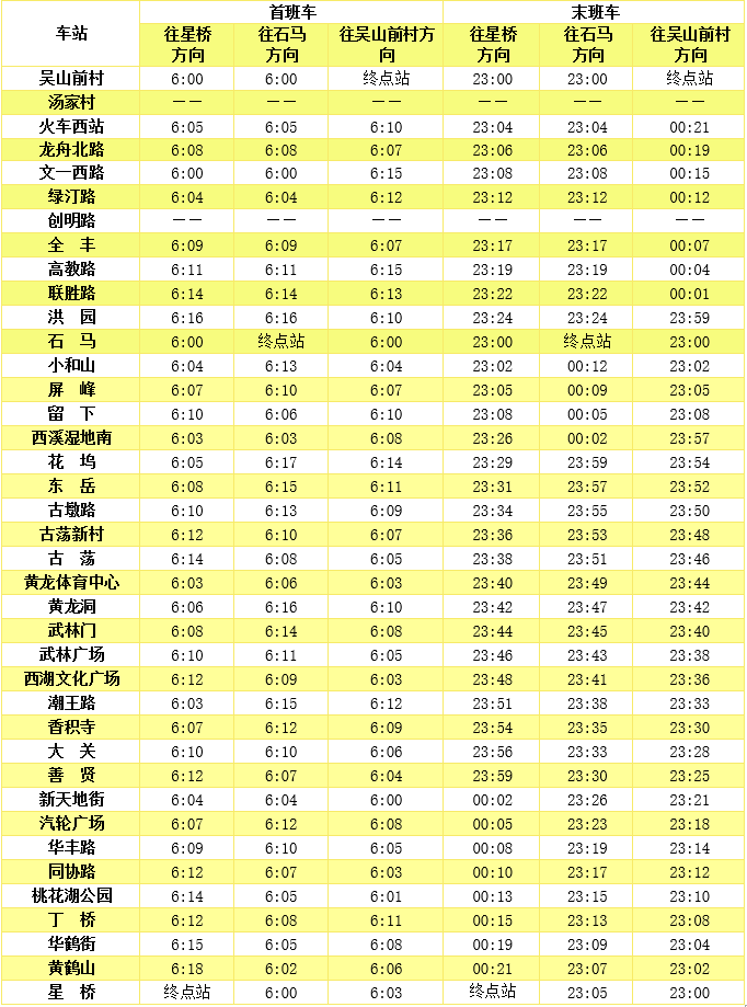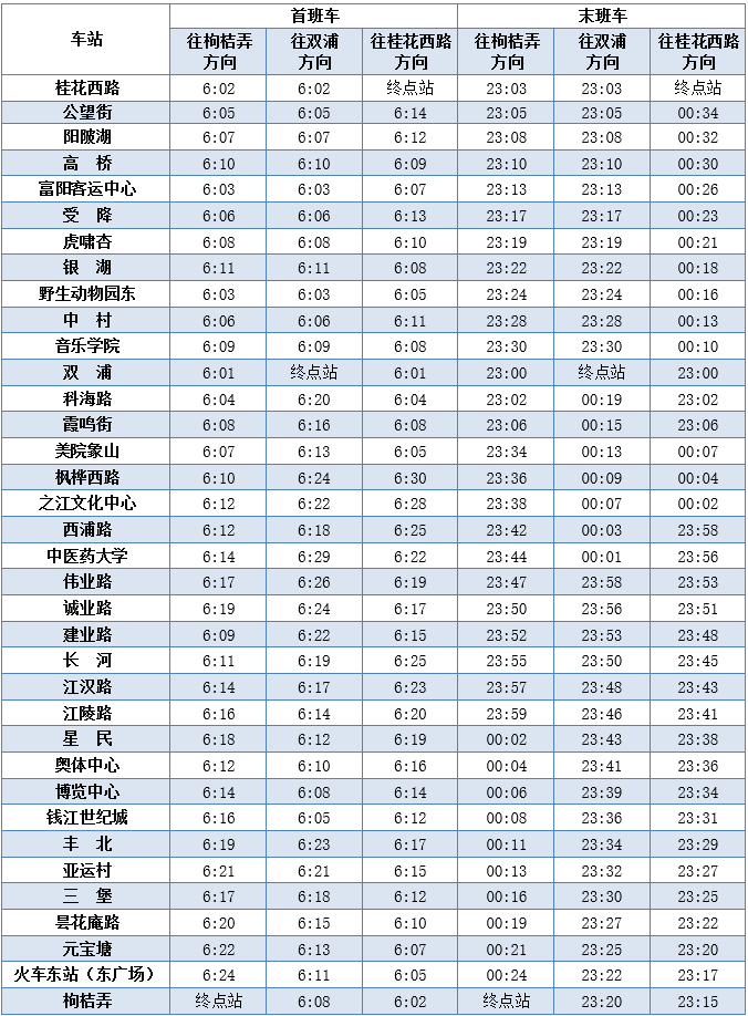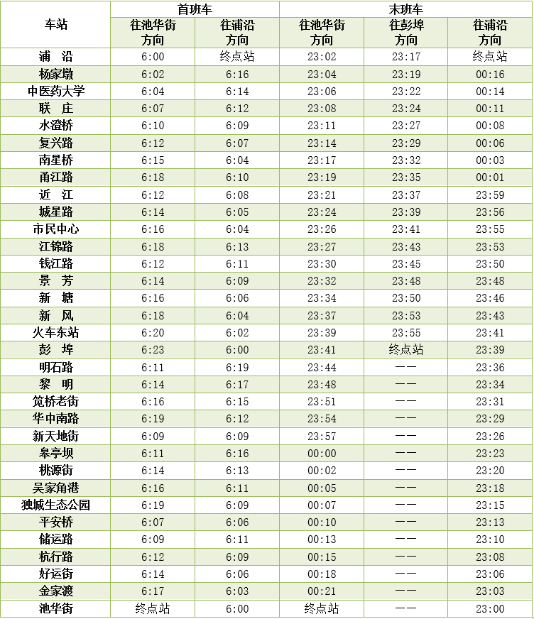 9月30日、10月1日、10月7日和10月8日,全线网末班车起点站发车时间均延长至23:00后;同时,地铁1、4号线火车东站站始发末班车延长至次日0:30,19号线火车西站站始发往火车东站(东广场)站末班车延长至次日0:30。