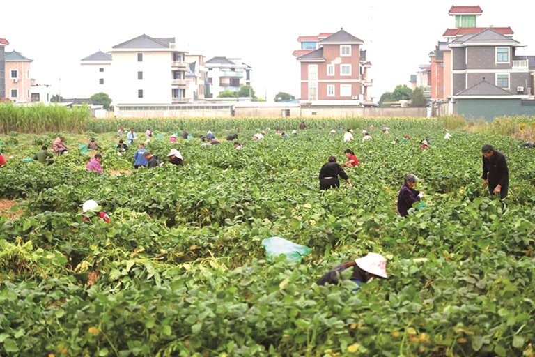 河庄街道毛豆种植面积超50亩的大户有8户,同样也面临着用工问题。河庄街道的工作人员说,整个河庄街道种植毛豆预计总产量高达800吨。自10月下旬进入采收期以来,街道积极帮助发布招工信息,并推动组建起一支支“助农采摘队”。