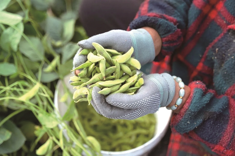 俞杭告诉记者,目前采摘工主要来自周边村民和租户,每到采摘季,大家都知道活虽然累,但收入也不错,特别是闲在家的老年人一天摘200斤左右,收入100多元。熟练工一天能摘300斤到400斤,收入在300元左右,一个毛豆季可收入5000元左右。