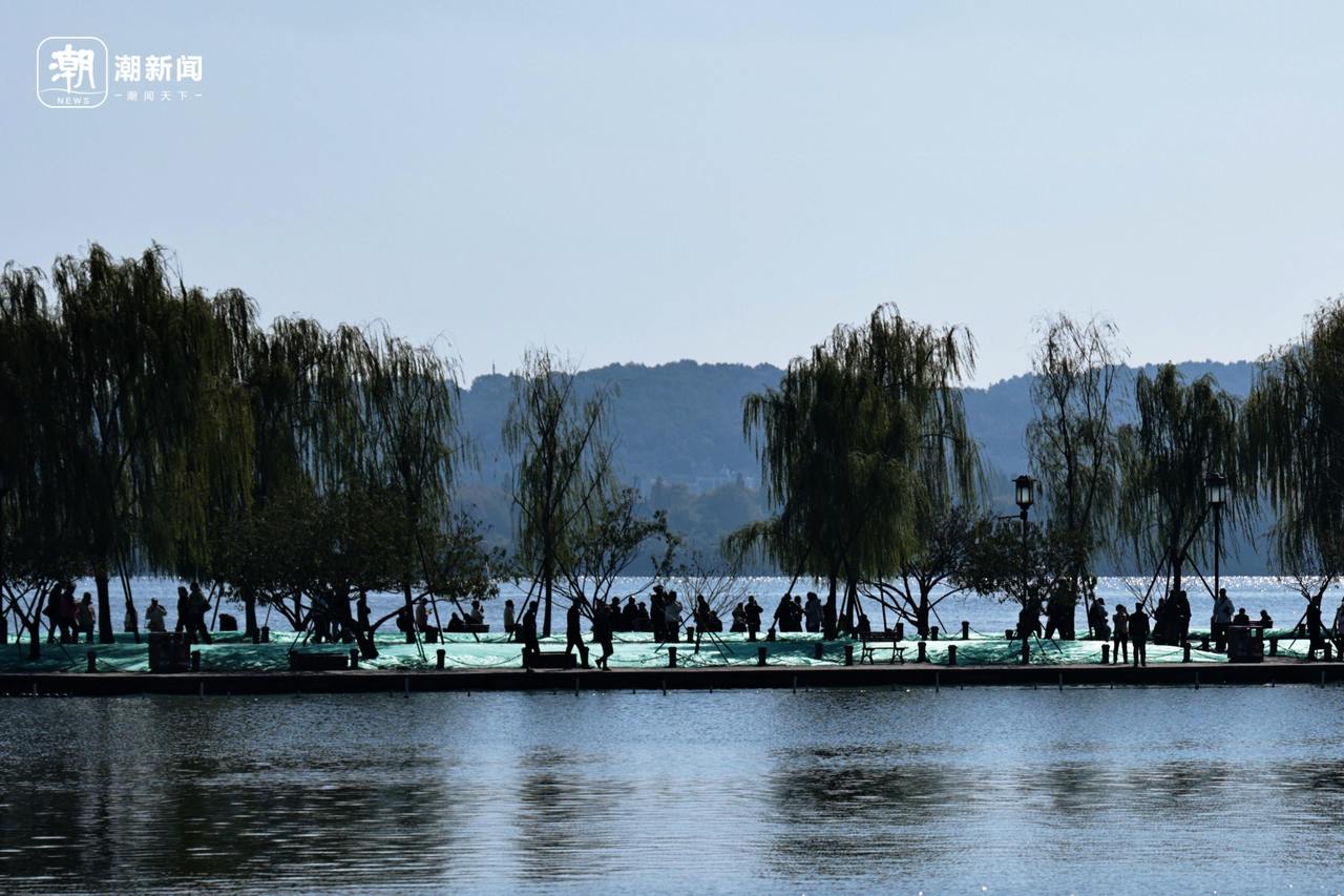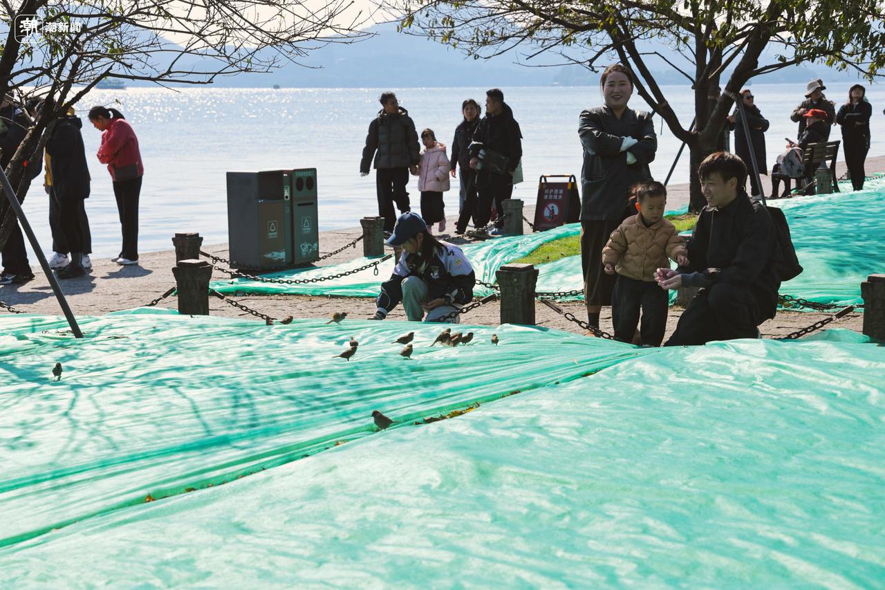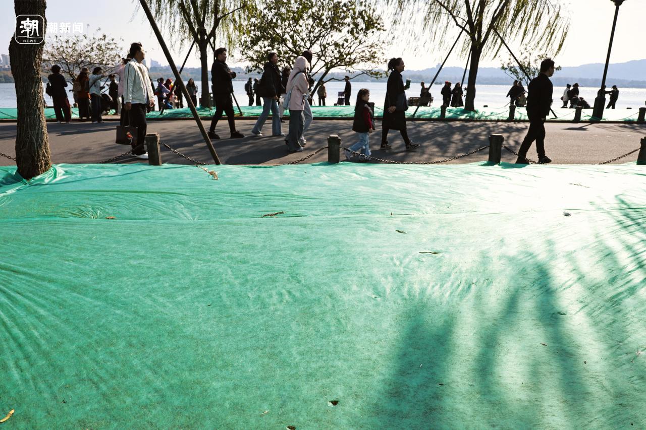 西湖边,白堤小草盖“棉被”,过冬仪式感上线