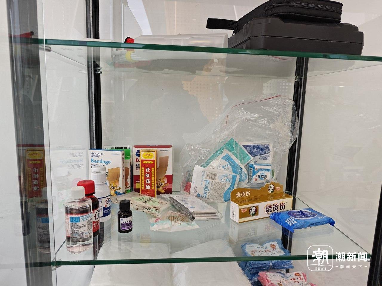 方便的柜子和伞架里,也有各种免费的物资,常见的应急药品、免费的爱心雨伞和雨衣、暖宝宝,甚至修车用的工具箱,也应有尽有,方便市民随时取用。