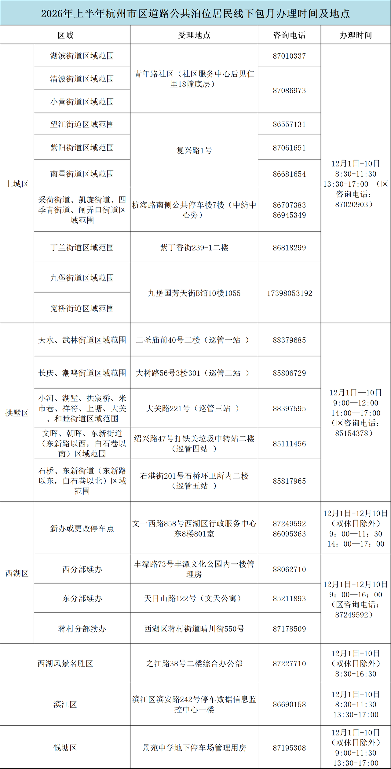 记者从杭州市城市管理局了解到,2026年上半年杭州市区道路泊位居民停车包月将于12月1日至10日集中办理,此次包月业务支持线上、线下同时办理。