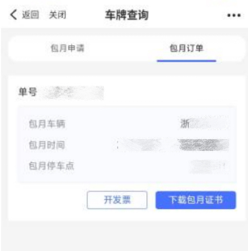5.下载。包月成功后,车主可根据自身需求,选择开发票、下载包月证书(非必须环节)。