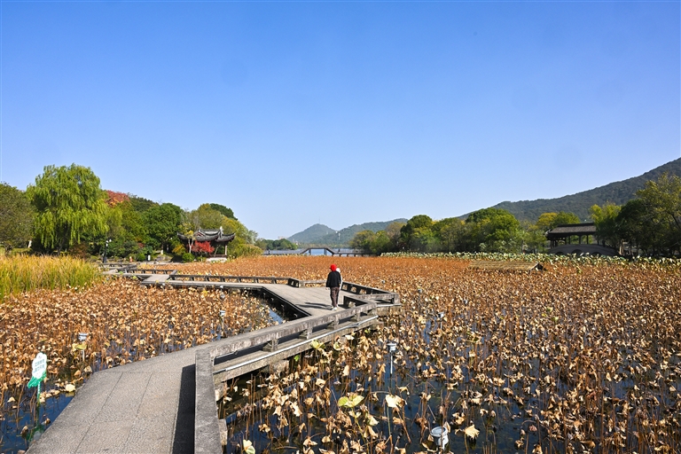 湘湖将春夏秋的记忆,敛入斑斓色彩,藏进泥土,静待下一个轮回的舒展。