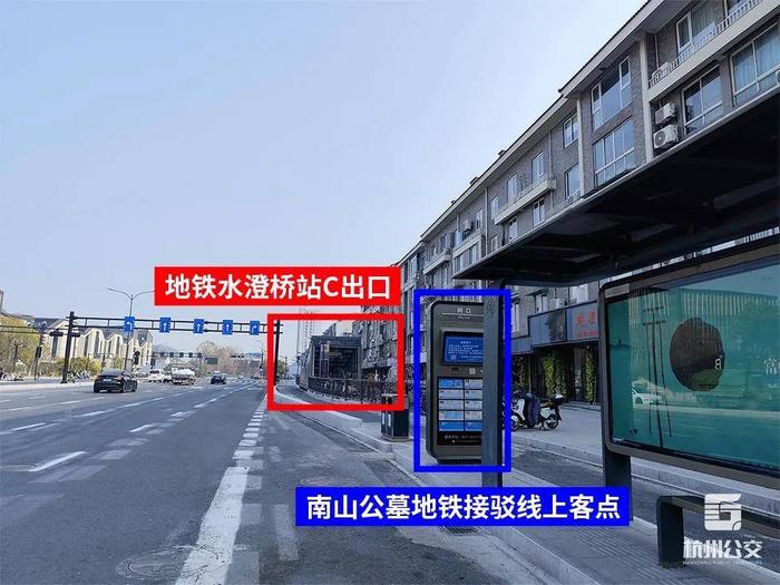 乘坐7434B路前往龙洞、超山公墓的市民,可在下图所示位置上车。