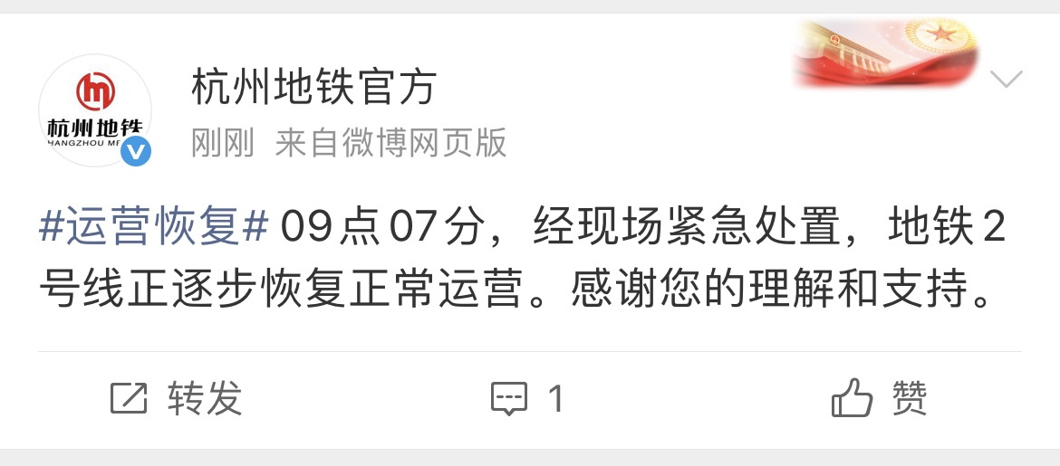 刚刚,消息传来,9点07分,经现场紧急处置,地铁2号线正逐步恢复正常运营。