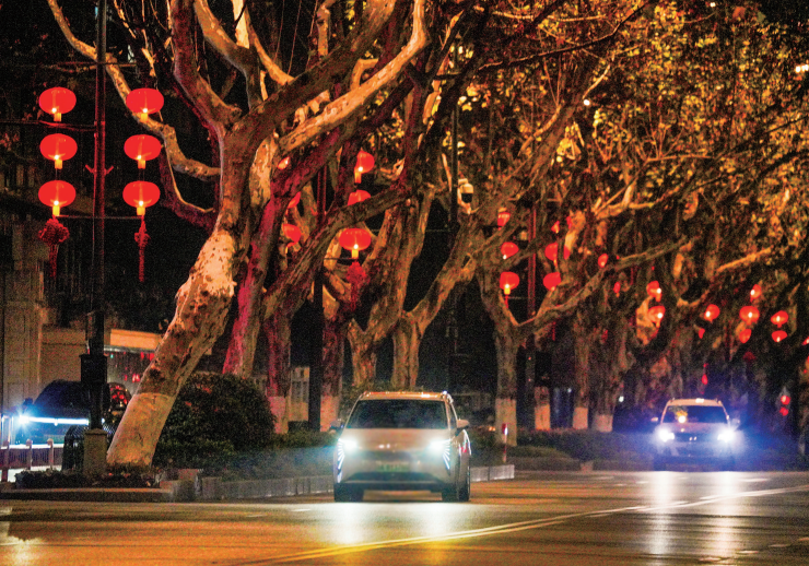 春节临近,杭城的大街小巷已陆续挂上了一串串大红灯笼,将冬日的街巷装点得暖意融融,浓郁的年味扑面而来,处处皆是新春将至的喜庆氛围。 图为昨晚杭州体育场路街景。