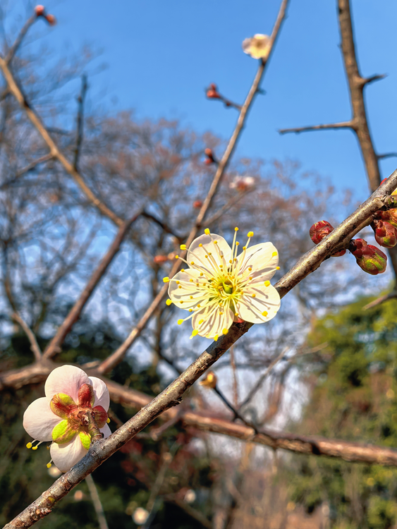 林社前的梅花有些已经开放 记者钟一鸣/摄