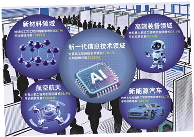 近日,智联招聘基于平台大数据发布《2025年四季度人才市场热点快报》,梳理人才市场的供需情况。该报告显示,2025年四季度招聘增长较快的行业为新一代信息技术、高端装备、新材料、航空航天、新能源汽车等。