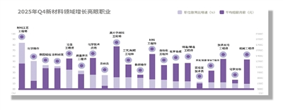 受新能源、高端装备、航空航天等行业需求拉动,新材料行业进入加速迭代与扩产阶段,对研发、工艺、质控、加工制造类人才的需求迎来较大增长。其中,材料工艺工程师在新材料领域中需求增长最快,2025年四季度职位数同比增长83.1%,平均招聘月薪为11999元。