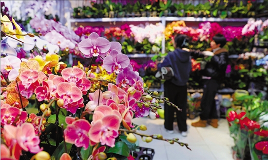 1月28日,随着春节渐近,在浙江杭州凤起花鸟城,不少市民前来选购年宵花。除了蝴蝶兰、拱兰,垂丝茉莉、红柠檬树、冬青等也成了年轻人的“心头好”。