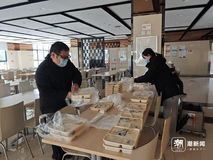 中午送完餐,许广思和程静会返回站点执勤,等到下午三点多又要继续准备为大家配送晚餐。