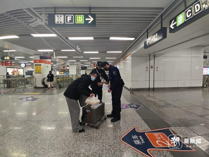 1月28日,潮新闻记者来到朝阳站派出所,跟着所里的送餐员许广思和程静一起送餐。