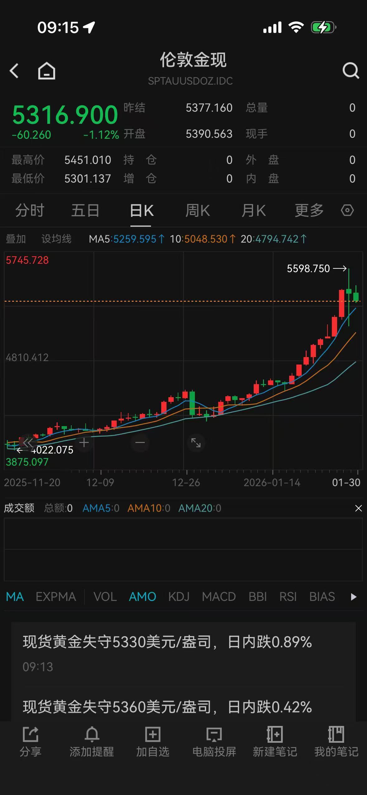 截至发稿时,现货黄金跌超1%,交投于5316美元/盎司附近,而在1月29日,现货黄金一度冲破5598美元/盎司高点。