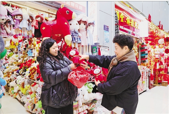 随着马年春节临近,一款“哭哭马”公仔玩具成为杭州年货市场的爆款产品。记者 栾兰 摄
