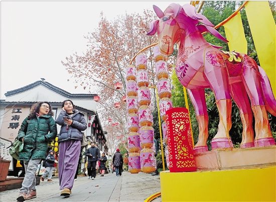 1月31日,杭州大兜路历史文化街区年味浓郁,不少市民、游客在“马上兜有”的马灯装置前驻足。 记者 林云龙 摄