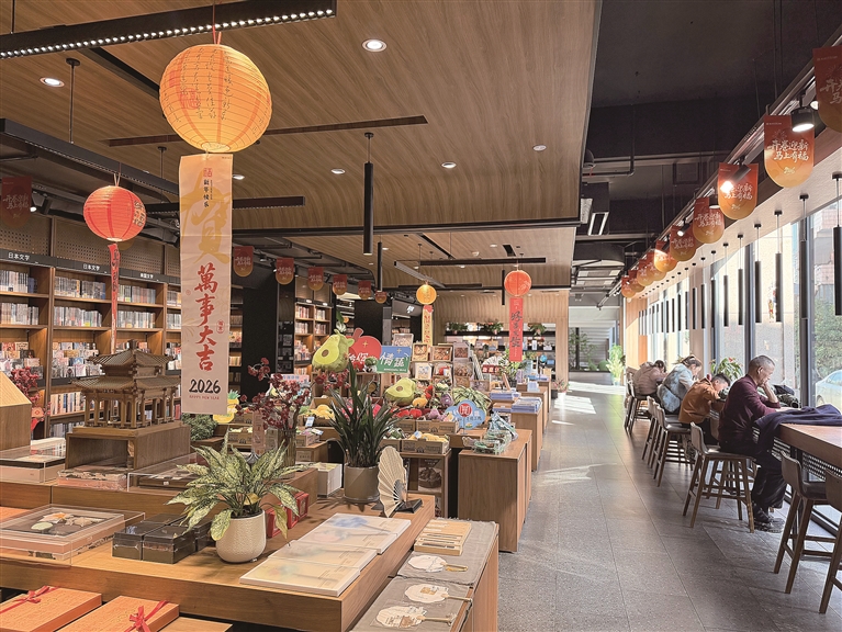据相关负责人介绍,春节期间客流以亲子家庭为主,图书及文创总销售额与去年基本持平。书店线上发放满减券,有效拉动消费、提升复购率。少儿读物、寒假推荐书目持续热销,《活着》《觉醒者们》等文学作品受到年轻人青睐,马年铜器、故宫文创、西泠印社周边等国潮文创销量稳步增长,市民消费从“买书”逐步转向文化体验消费。