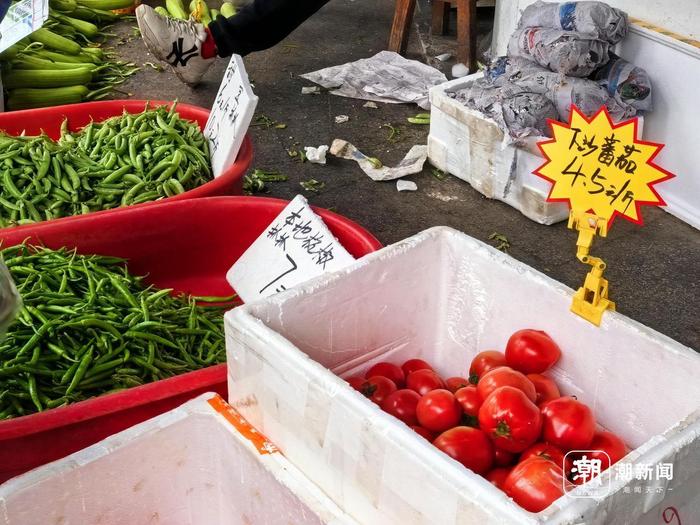 像节前农贸市场要卖到12元/斤的西红柿,现在的零售价格约为4.5元/斤。对于价格变化,摊主高女士说,西红柿价格下降主要归因于本地西红柿集中上市,市场供应量增加。