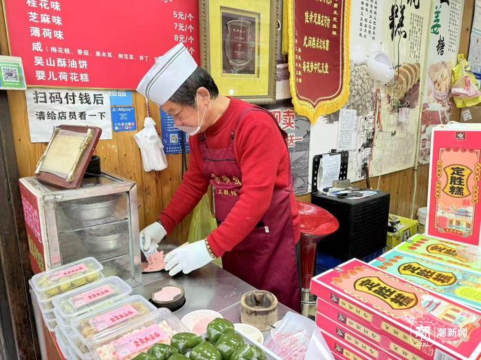 来自江苏的李先生一口气买了五盒定胜糕,“家里人都爱看《太平年》,特意让我来杭州带点正宗的定胜糕回去,讨个彩头。”蒋师傅说,这几天像李先生这样的外地游客特别多,“以前多是本地老顾客,现在除江浙沪以外的客人也专程找来,一次买二三十盒的都有。”蒋师傅感慨:“很多年轻人本来不知道定胜糕,看了电视剧特意来打卡,排队的时候,老顾客就会帮我们介绍,说这是老传统的东西,怎么好吃怎么有寓意。”