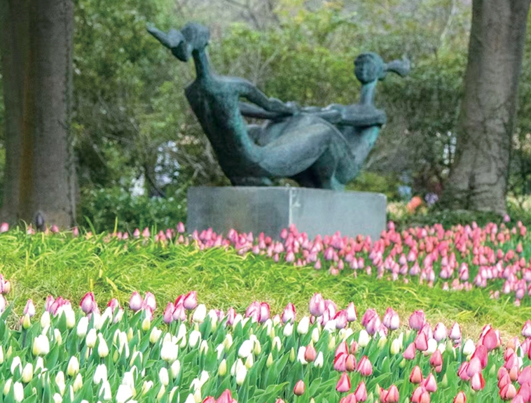 长廊的尽头,巨型的潮新闻吉祥物“潮奔奔”彩灯矗立于八少女雕塑之前,迎来送往。要是时间得当,喷泉涌动,便是独一份的灯会体验。