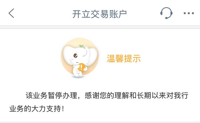 潮新闻记者登录工商银行APP,在“代理实物贵金属递延”栏目中尝试选择其中一个品种进行“委托交易”时,页面提示“该业务暂停办理,感谢您的理解和长期以来对我行业务的大力支持!”