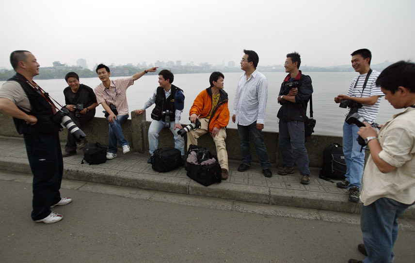 一张20年前的照片里,十几个背着相机的年轻人,挤在断桥边,仰头等待一场暴雨。