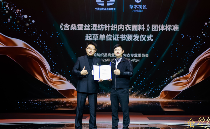 盛典现场的两大行业权威事件,标志着草本初色的行业地位与品质实力获得官方认可,也让品牌的行业标杆地位进一步夯实。品牌领衔起草《含桑蚕丝混纺针织内衣面料》团体标准起草单位证书,将以核心技术力量参与行业标准制定,推动桑蚕丝内衣行业的规范化、高品质发展;同时,新华社《中国名牌》揭牌仪式的隆重举行,中国纺织品商业协会秘书长王江波先生、浙江省服装行业协会会长郑念华先生、草本初色品牌代言人孙怡女士、草本初色品牌创始人陈培鑫先生、草本初色品牌联合创始人刘宝先生共同揭幕,标志着草本初色正式跻身中国优质名牌行列,权威背书的升级为品牌发展注入强劲动力。