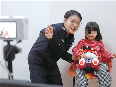 白杨派出所辅警王维正引导小女孩拍身份证照片